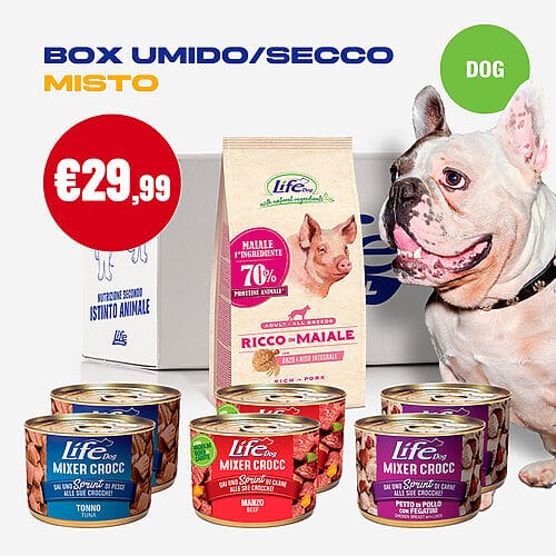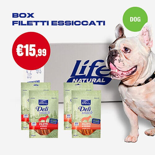 Per questo nei nostri box trovate alimenti umidi fatti con parti nobili della carne e del pesce (petto di pollo o tranci di tonno) lavorata a mano e senza additivi. Ma anche alimenti secchi completi con un’alta percentuale di proteine animali e pochi cereali.