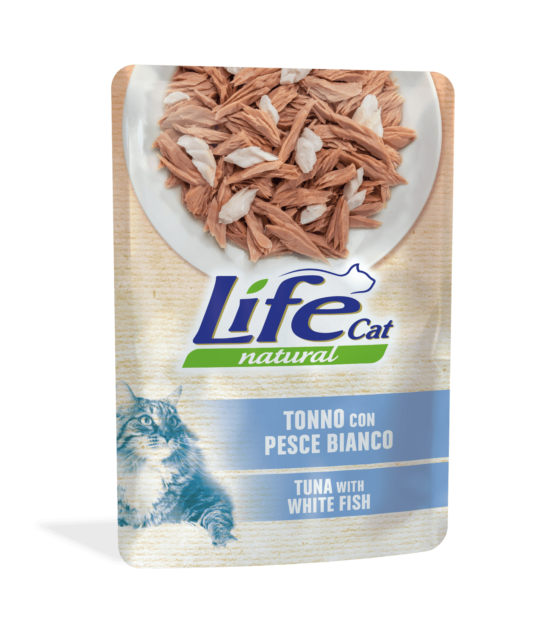 Tuna is rich in proteins of the best biological value, the addition of white fish makes the product light and digestible. It is an extremely palatable product even for the most demanding cats.