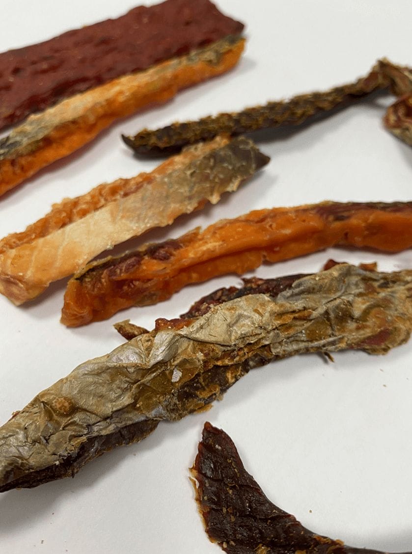 Tutti i nostri filetti essiccati sono fatti con una sola fonte proteica animale e preparati senza l’aggiunta di zuccheri, coloranti ed aromi artificiali.