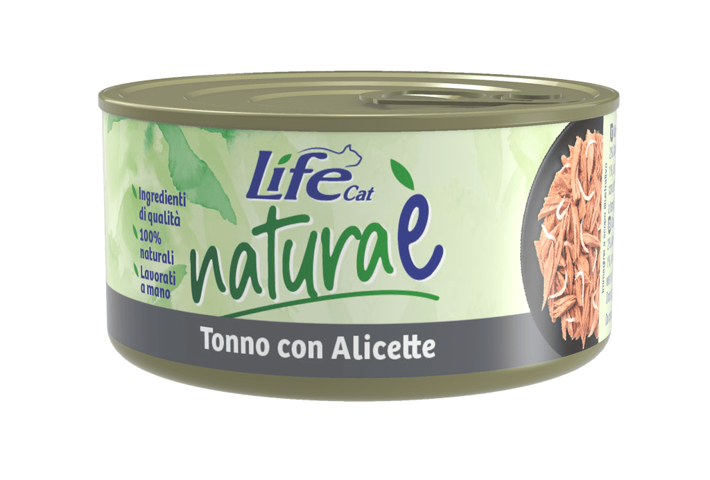 | Life cat Natura รจ tonno con alicette รจ un alimento completamente naturale, fatto con tonno di prima scelta e alicette, in acqua di cottura. Senza coloranti e conservanti, permette di alimentare il tuo gatto in modo genuino e gustoso. |