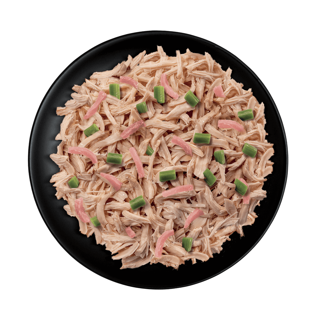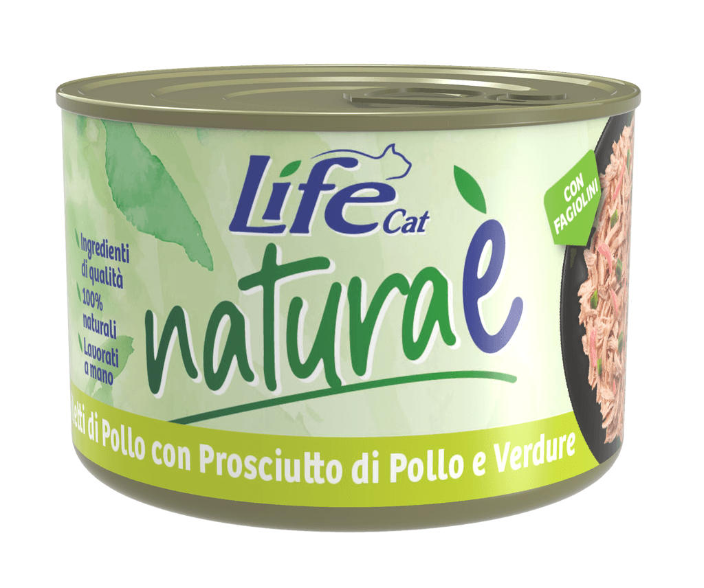 | In un maxiformato da 150gr, si trovano filetti di pollo della migliore qualitร , guarniti con prosciutto e fagiolini verdi. Il tutto cotto al vapore e conservato in brodo di cottura. Senza aggiunta di conservanti, additivi o coloranti. Eโ un alimento ricco di proteine nobili e povero di carboidrati, nel rispetto delle esigenze nutrizionali del gatto. |