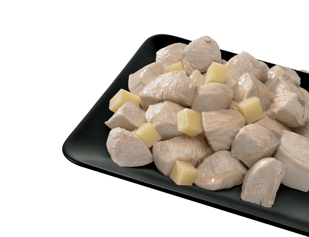 | Filetti diย petto di pollo e formaggio conservati inย salsa naturale. ร un alimento molto gustoso, si puรฒ offrire al cane da solo o mischiato con crocchette secche per renderle piรน appetibili. La carne di pollo รจ ricca di proteine di alto valore biologico, relativamente povera di grassi e facilmente assimilabile. |