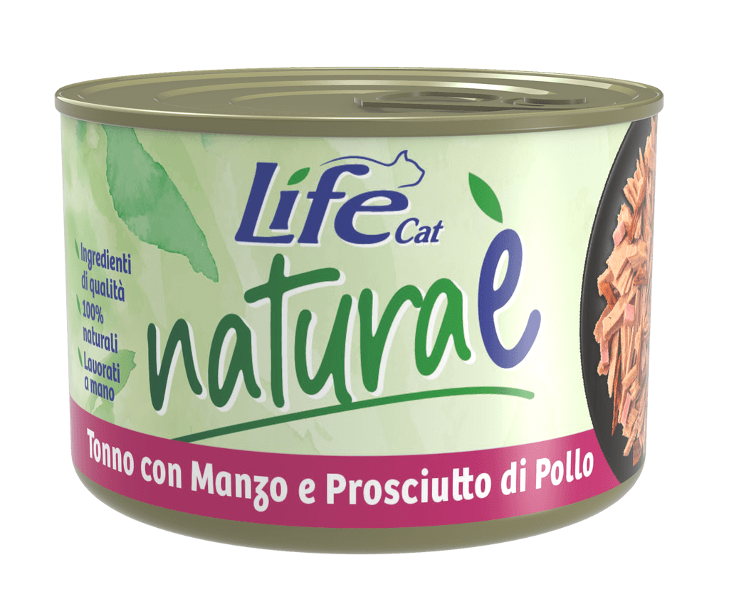 | In un maxiformato da 150gr, si trovano trancetti di tonno della migliore qualitร , guarniti con manzo e prosciutto. Il tutto cotto al vapore e conservato in brodo di cottura. Senza aggiunta di conservanti, additivi o coloranti. Eโ un alimento ricco di proteine nobili, di preziosi acidi grassi essenziali omega 3 e povero di carboidrati, nel rispetto delle esigenze nutrizionali del gatto. |