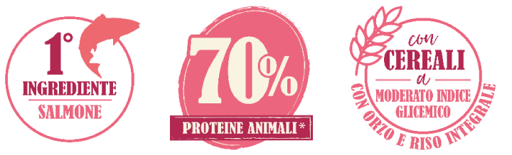 Inoltre, la carne di salmone è meno utilizzata nei mangimi tradizionali ed è più difficile che il cane abbia manifestato intolleranze verso di esso.