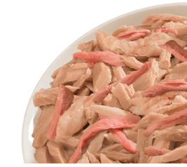 Trancetti di tonno di prima scelta presenti in grande quantità e guarniti con veri filetti di manzo. Il tutto cotto al vapore e conservato in brodo di cottura. Il tonno e il manzo rendono l’alimento ricco di proteine nobili, di preziosi acidi grassi omega 3 e povero di carboidrati, nel rispetto delle esigenze nutrizionali del gatto.