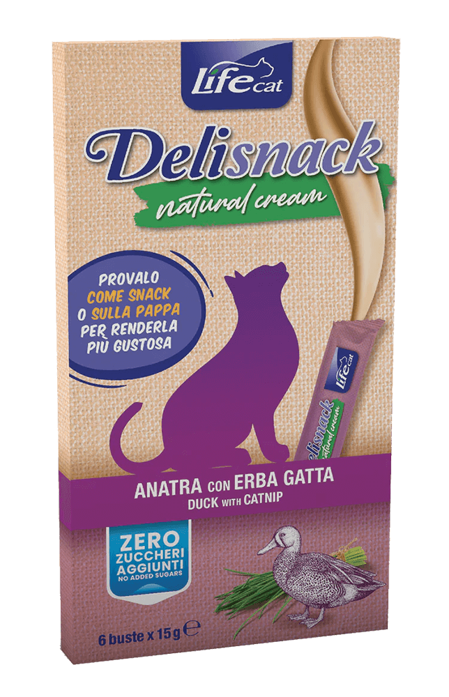 - 6 confezioni da 90Â grammi di Natural cream “anatra con erba gatta”
